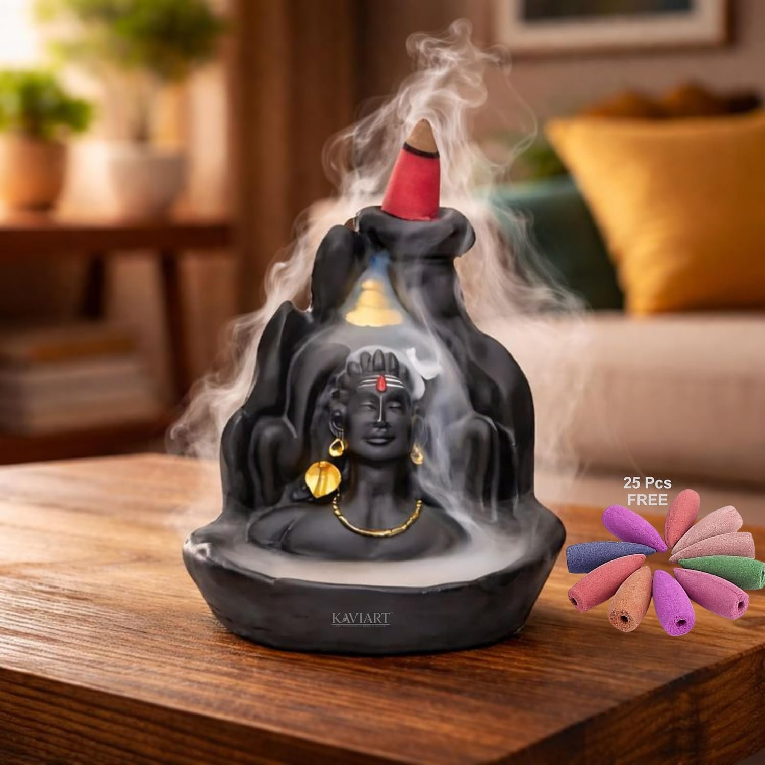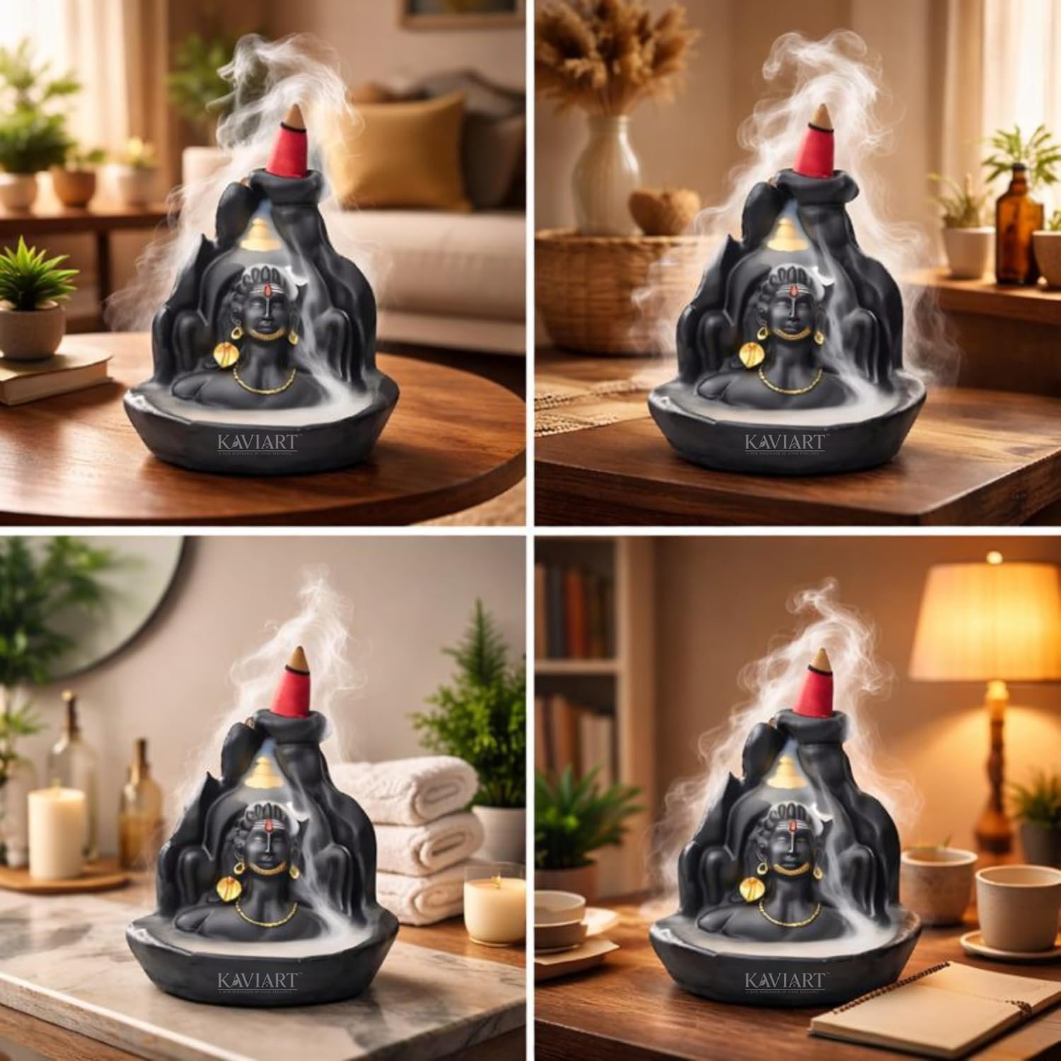 - Spiritual & Meditative Effect – Smoke flows downward creating a magical backflow waterfall around the Shiva idol, enhancing peace and positivity.