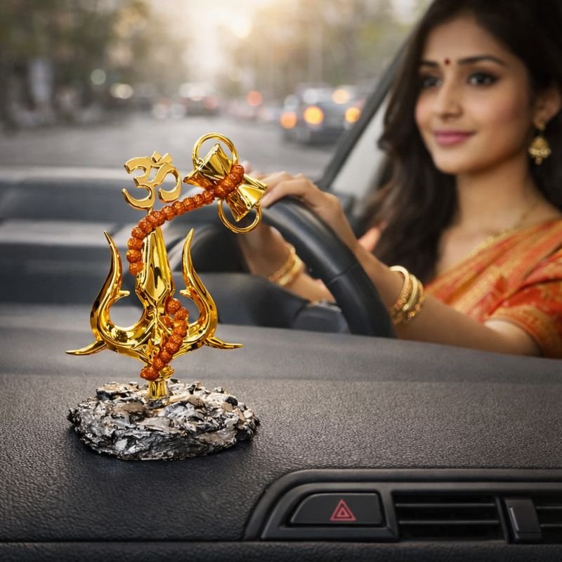 Be the first to review “KAVIART Divine Lord Shiva Trishul Car Dashboard Idol with Om & Damru Decorative Showpiece – 11 cm (Resin, Gold)”
