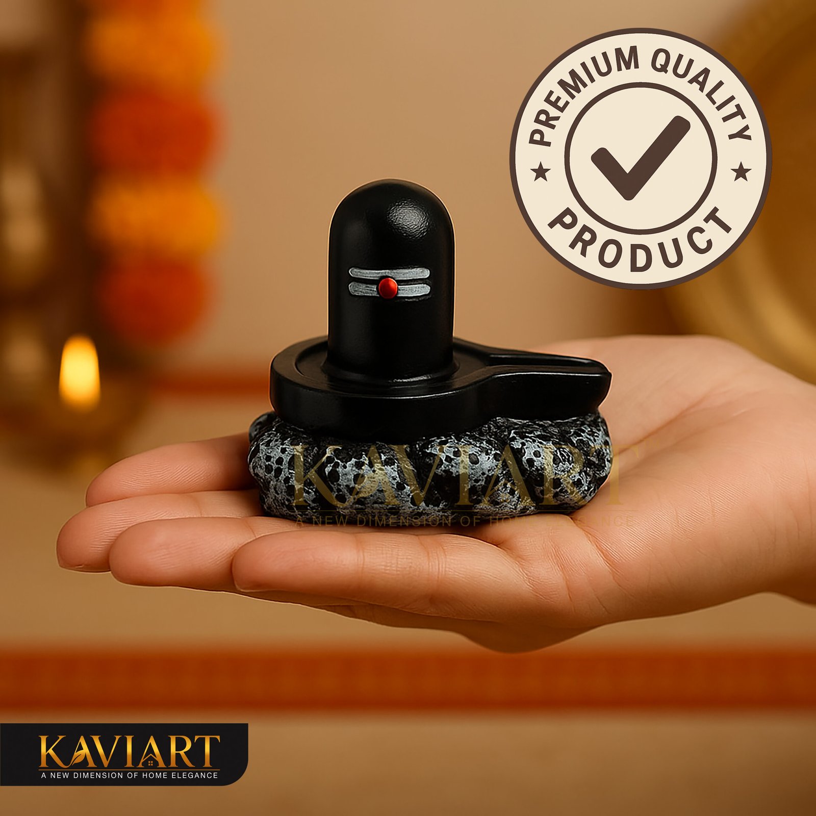 KAVIART Premium Shivling, Shiva Lingam for Home Temple, Office, Car Dashboard, Shivratri Decorative Showpiece – 8 cm (Resin, Black)