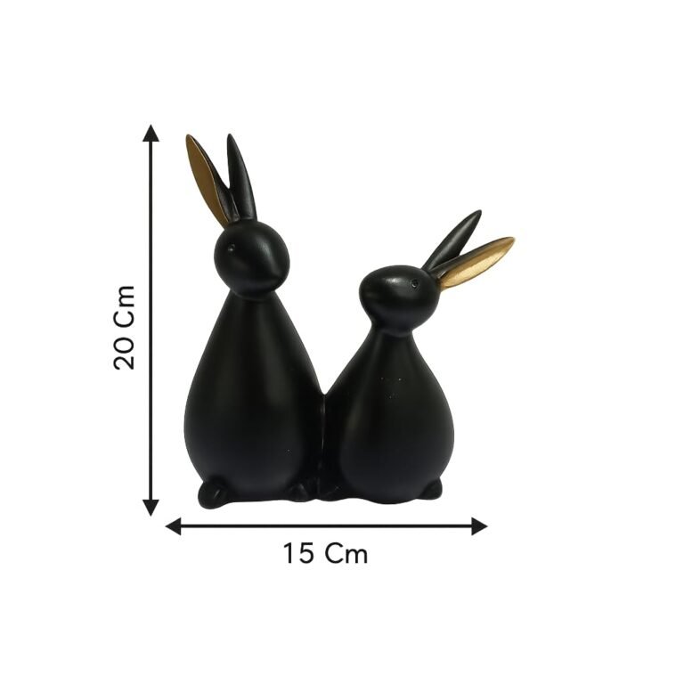- Elegant Rabbit Couple Figurine – Beautifully crafted resin showpiece featuring a modern black finish with golden ears, symbolizing love, affection, and positivity.